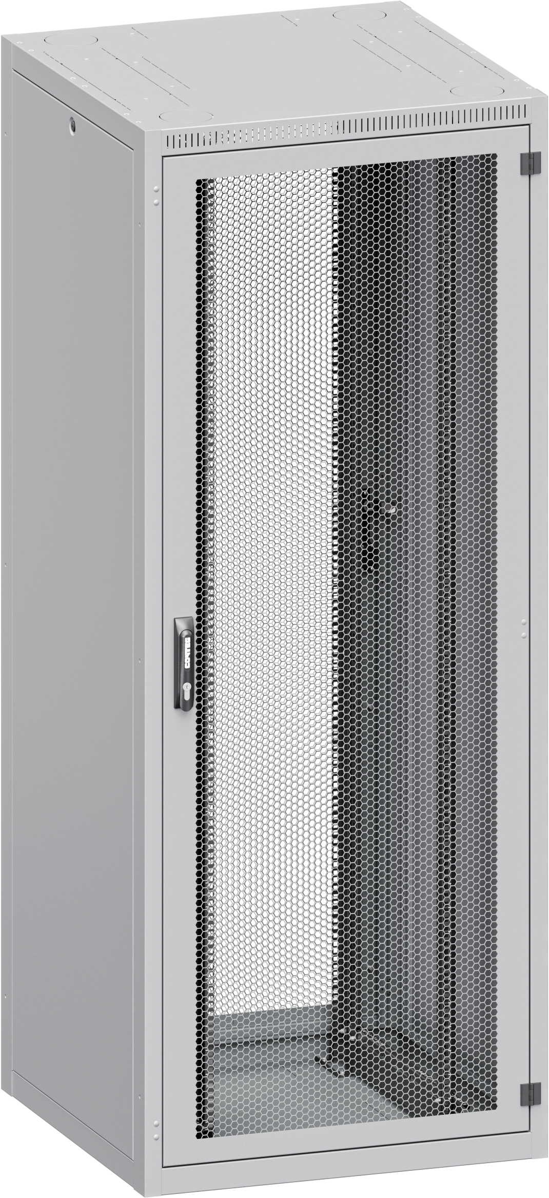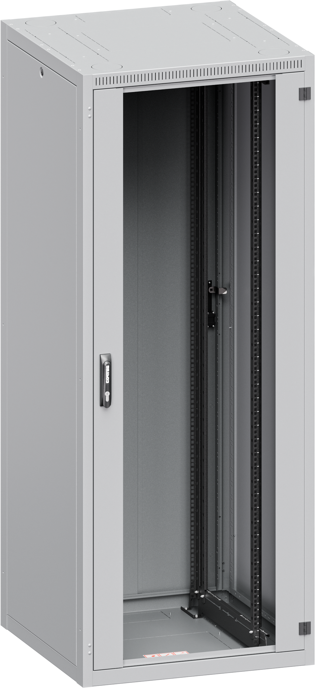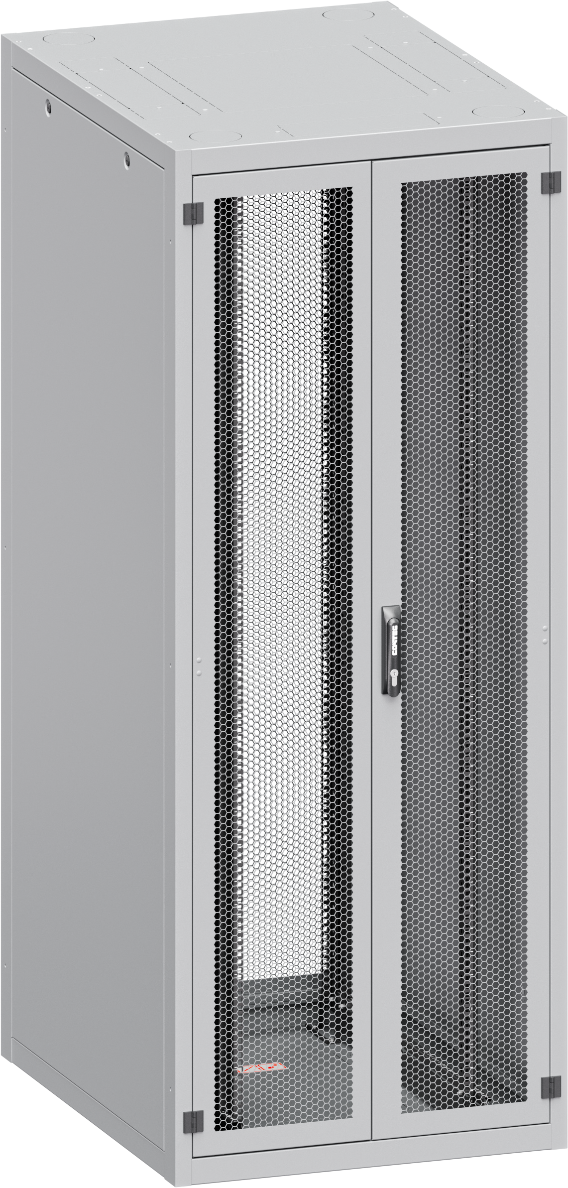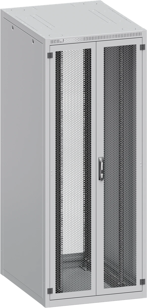 Úhel otevírání dveří je 180°, snadno přepínatelné směrování otevírání, pantová rukojeť s vyměnitelným profilem podle normy DIN. Pět typů dveří dostupných pro přední nebo zadní montáž + jeden typ zadního panelu: • G – Prosklené dveře; • S – Oceloplechové dveře; • P – Perforované oceloplechové dveře (max. IP20); • W – Větrací dveře s perforací, míra perforace 86 % (max. IP20); • F – Vertikálně dělené větrací dveře s perforací, míra perforace 86 % (max. IP20, pouze s vícebodovým zámkem); • Y – Zadní panel, jeden kus. |